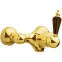 Назначение: душ • Конструкция: однорычажный • Монтаж: вертикальный • Материал: покрытие - золото • Подводка: жесткая • Монтажные отверстия: 2 отверстия • Душевая лейка в комплекте: нет