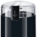 Принцип действия: лезвия • Мощность: 180 Вт • Регулировка степени помола: есть, 3 степ. • Вместимость: 75 г • Безопасное включение: есть • Порция помола: 10 - 75 г. • Размеры (ШxВxГ): 90x170x90 мм • Вес: 0.6 г • Цвет: черный