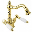 Назначение: для биде • Конструкция: двухрычажный • Монтаж: горизонтальный • Материал: латунь, покрытие - золото • Монтажные отверстия: 1 отверстие • Форма излива: традиционная • Душевая лейка в комплекте: нет • Донный клапан в комплекте: есть