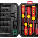 КомплектацияБиты: крестовые: РН0х2, РН1х2, РН2х2, PH3x4, PZ1, PZ2, PZ3; U-образные: U6, U8, U10, U12; шестигранные: Н2,5, НЗ, Н4, Н5, Н6; квадратные: SQ1, SQ2, SQ3; tri-wing (трехлистник): Y1, Y2, Y3, Y4; DR: #1, #2, #3; треугольник: 2,3, 2,6, 3,0; X: 6, 8,10; шлицевые: SL3x2, SL4x2, SL5x2, SL6x2, SL7x2; шестигранная звезда (с отверстием): Т8Н, Т10Н, Т15Н, Т20Н, Т25Н, Т27Н, ТЗОН, Т35Н, Т40Н; головки мини: М5, М6; головки: М5, М6, М7, М8, М9, М10, М11, М12, М13; отвертки: РН0х75, РН1х75, SL3х75, PH/SL2х75; отвертка под биты; переходник; тестер-отвертка, намагничиватель.